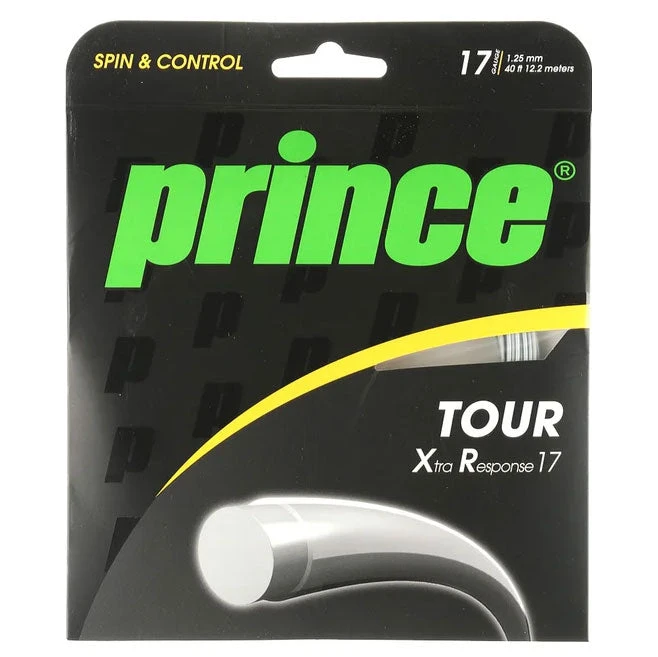 Prince Tour Xtra Response tennis string is a firm co-polyester monofilament that delivers control for powerful hitters. The low-power performance of this string lets you take big cuts at the ball without fear of over hitting. Constructed with a round profile that delivers great grip on the ball, Prince Tour Xtra Response is recommended to intermediate and advanced players who want a durable co-poly with surgical targeting.
