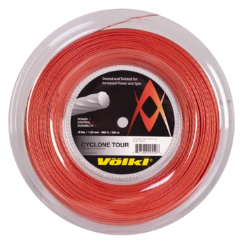 Volkl Cyclone Tour delivers great spin with a bit more power than standard Cyclone. Cyclone Tour has the same great shaped decagonal shape but is twisted. The twist adds liveliness and softness to the string that increases the accessible power. Players that want the same great spin of Volkl Cyclone but find it a bit low powered and jarring can switch to Cyclone Tour for spin, power with more comfort.